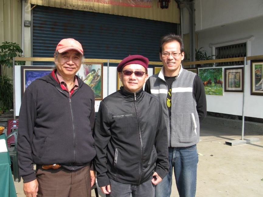 S015 第六屆府城人物畫會百合沙龍展合影 左起李約翰、蘇奕榮、林壯國