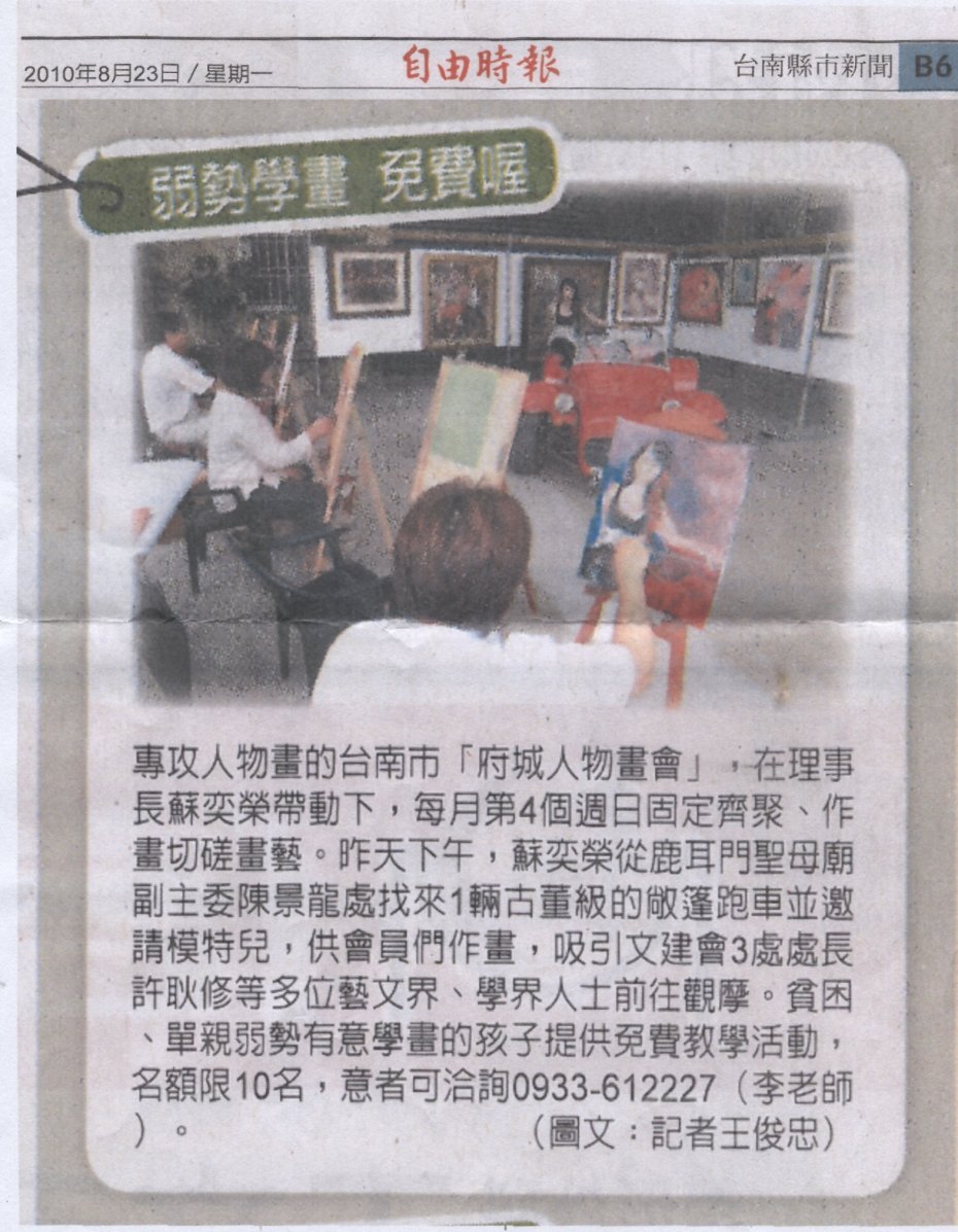 府城人物畫會 作畫兼作慈善 2010.8.25民眾日報 »