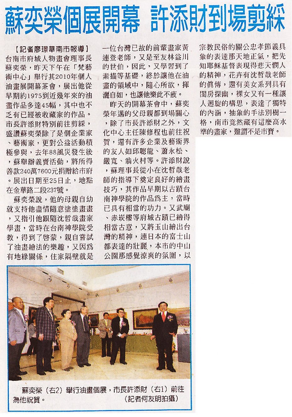 2010.11.10許添財參觀蘇奕榮油畫展(台灣時報) »