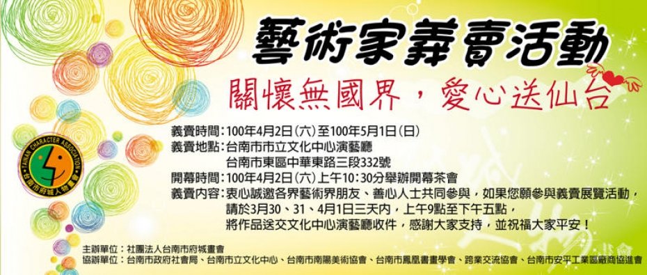 【關懷無國界,愛心送仙台】賑災義賣活動-台灣府城人物畫會主辦
