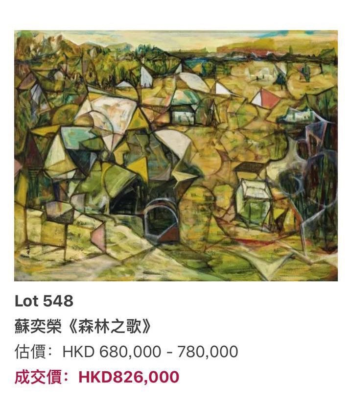 蘇奕榮 「森林之歌」香港保利拍賣,成交價港幣826,000元